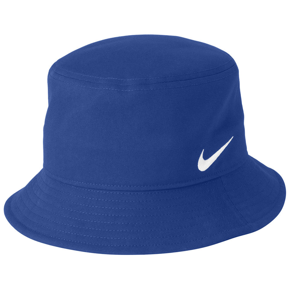 Nike Game Royal Swoosh Bucket Hat with a custom logo is a fun way to top a look. This bucket hat offers 360-degree coverage to keep you cool while looking cool. Featuring a Nike Swoosh on one side, the recycled polyester twill bucket hat will be a hit with most wearers. Place an order right away to make sure you are protected the next time you enjoy time on the water or resting by the pool.This product cannot ship outside of the United States.