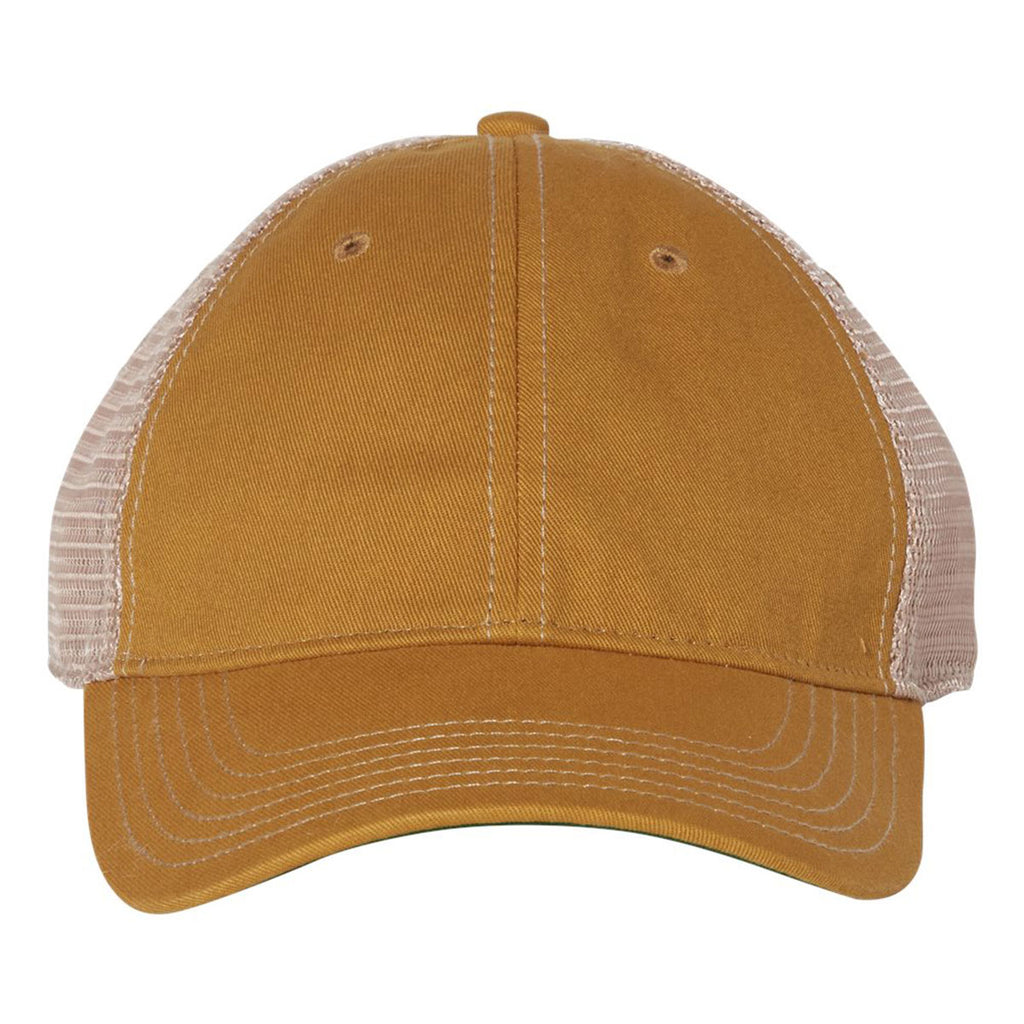 Add embroidery to the Legacy Yellow/Khaki Old Favorite Trucker Cap for a throwback look that will never go out of style. Made of a cotton polyester blend with a dirty washed cotton twill crown and mesh, this is the trucker cap everyone knows and loves. An adjustable, contrasting snapback closure is a one size fits most design that can be given as a custom gift or adorned with a company logo to use as employee apparel. Unstructured with six panels and a low profile, the pre-curved visor has a green undervisor to keep sun reflection down.Highlights