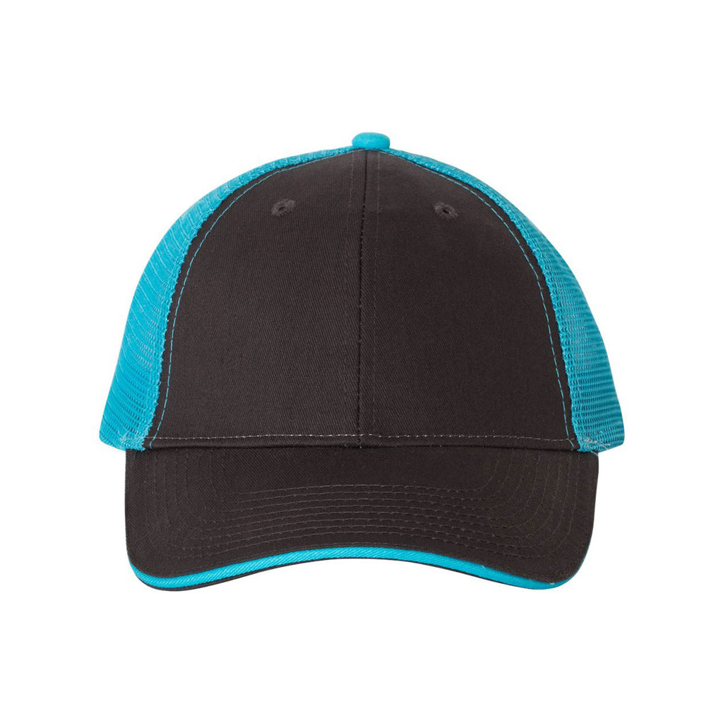 Valucap Charcoal/Neon Blue Sandwich Trucker Cap