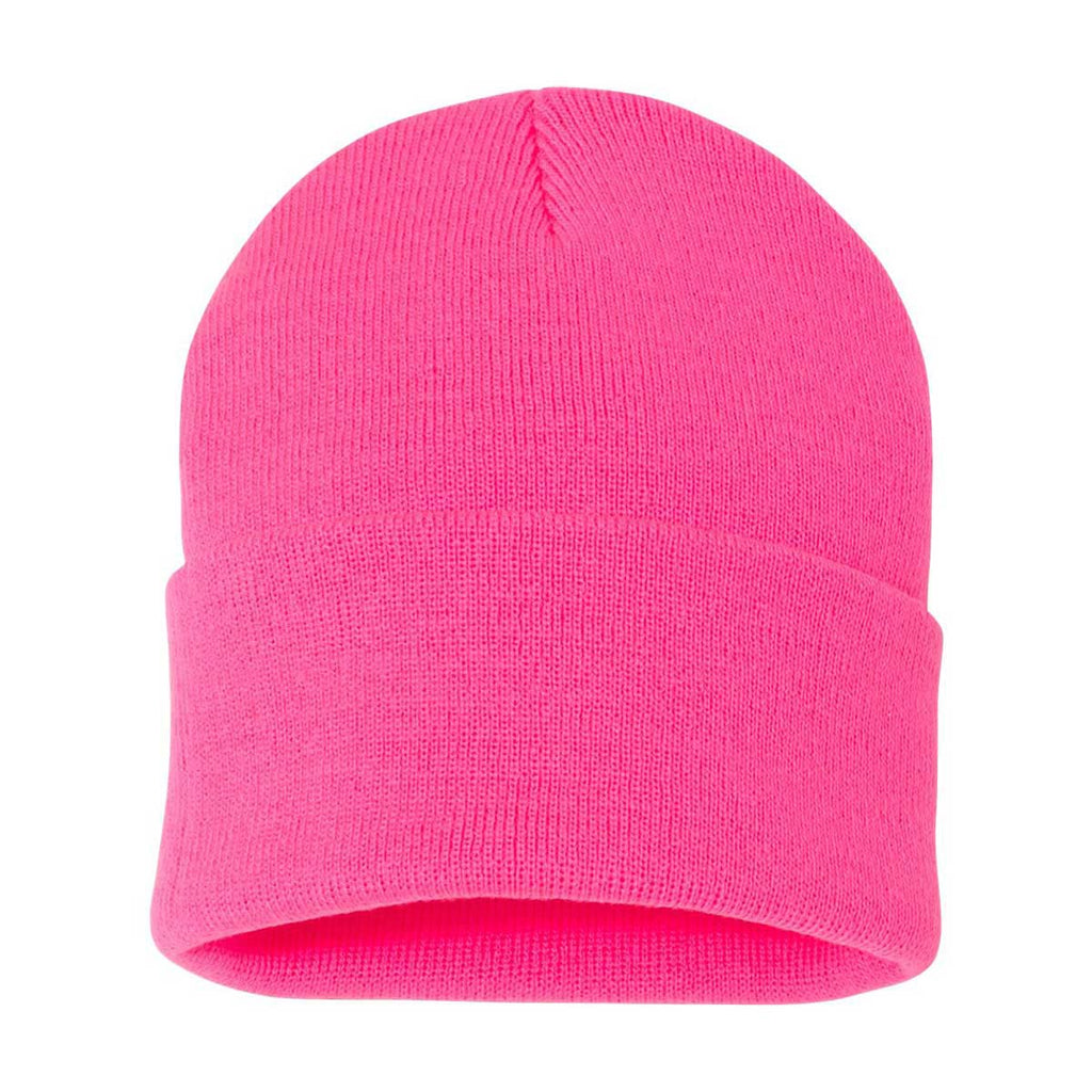 Create a custom look in multiple colors with the Sportsman Neon Pink 12" Knit Beanie. Made of 100% acrylic knit, this beanie has an adjustable cuff that can be worn as you prefer. Add a company logo to use these beanies as part of employee apparel for those who need to create a look that best represents your company. Add a corporate logo and choose a bright color for those who need headwear while working outdoors. These make an ideal gift for those in your company or for fans of sporting events that want to show local team spirit.Highlights