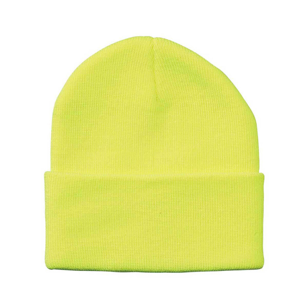 Create a custom look in multiple colors with the Sportsman Neon Yellow 12" Knit Beanie. Made of 100% acrylic knit, this beanie has an adjustable cuff that can be worn as you prefer. Add a company logo to use these beanies as part of employee apparel for those who need to create a look that best represents your company. Add a corporate logo and choose a bright color for those who need headwear while working outdoors. These make an ideal gift for those in your company or for fans of sporting events that want to show local team spirit.Highlights