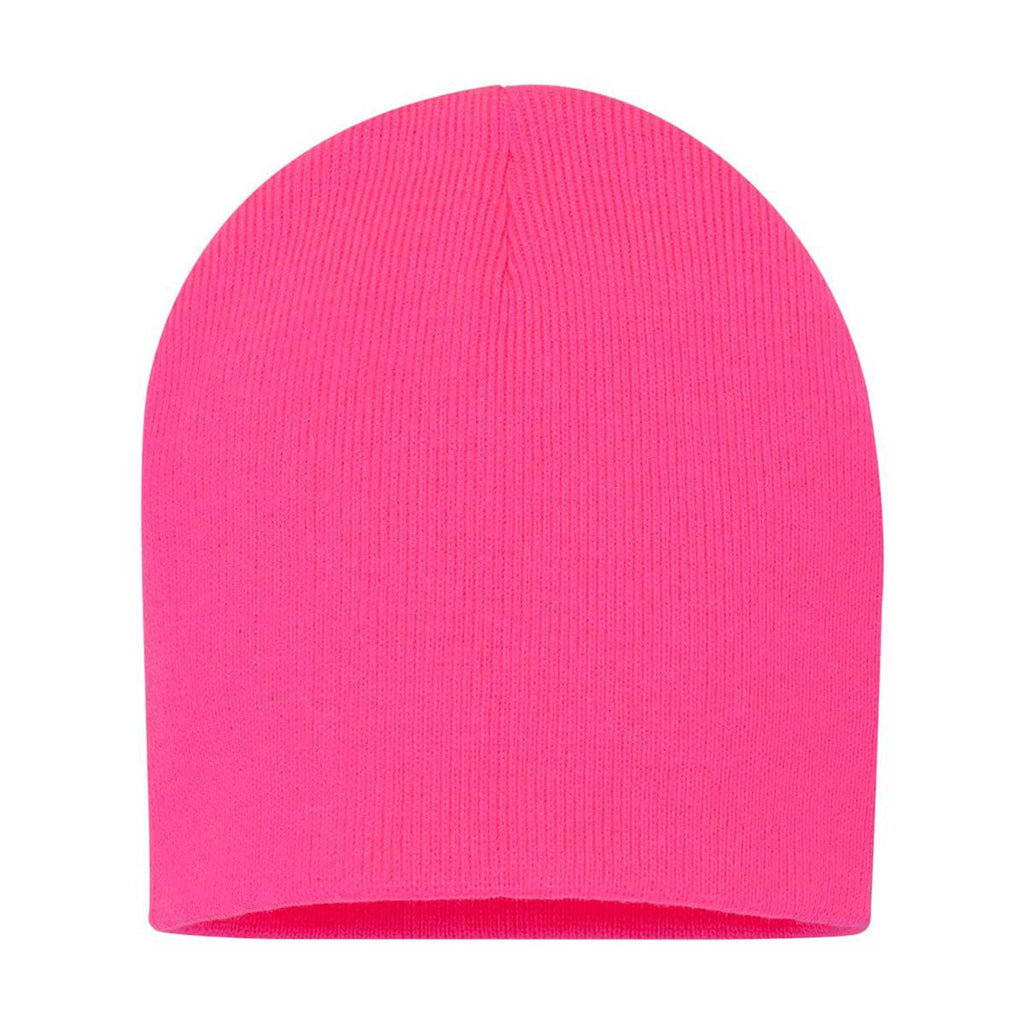 Keep it basic with a custom Sportsman Neon Pink 8" Knit Beanie in a huge variety of colors. Made of 100% acrylic knit, this beanie is a one size fits most design that can be embroidered with your company logo or design of choice. Choose a safety yellow as headwear for those who have to be outdoors in dangerous areas or a basic black to allow your corporate embroidery to stand out when it is worn to sporting events or as part of employee apparel. Create a look that everyone will want to mimic as you bring the beanie to the fashion front.Highlights