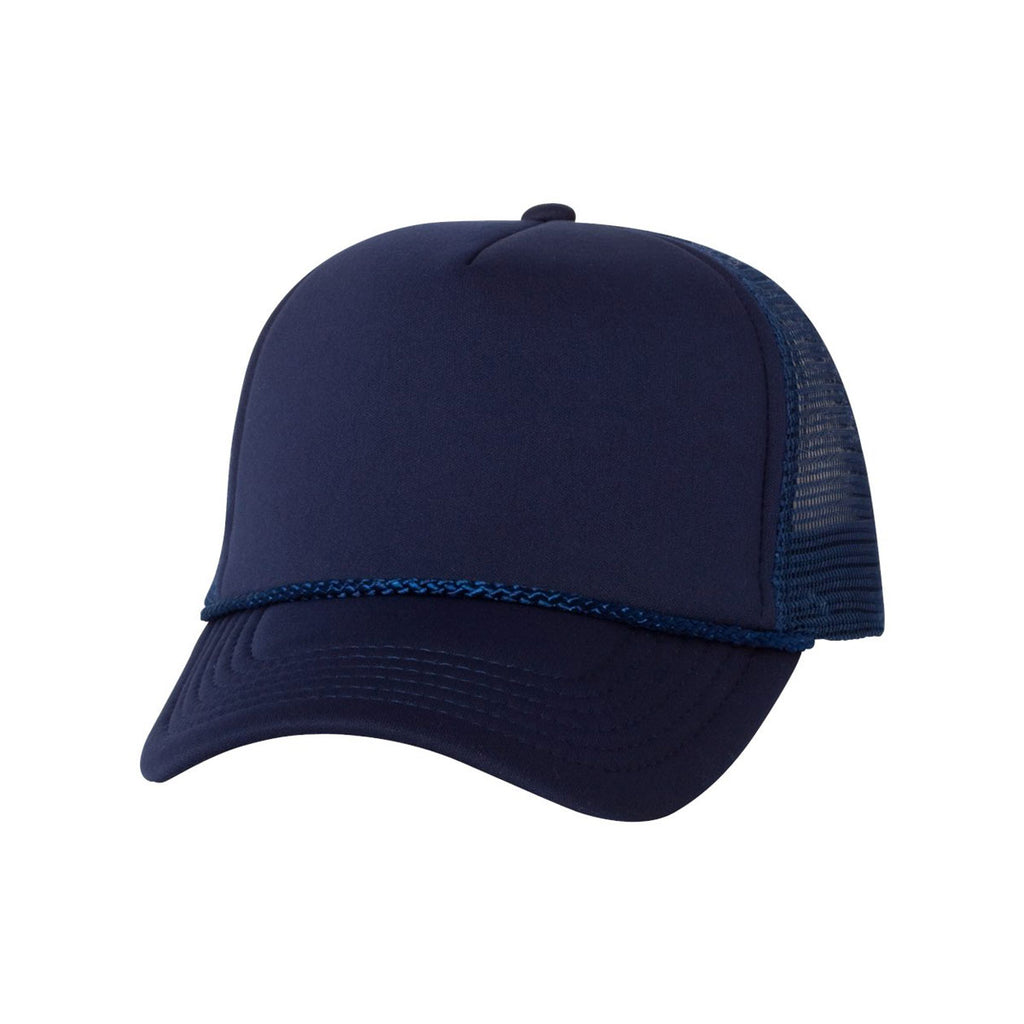 Enjoy the smooth feel of the custom logoed Valucap Navy/Navy Foam Trucker Cap. The 100% polyester foam front of the cap ensures you enjoy supreme comfort throughout your active day. Soft mesh designed into the back of the cap encourages the circulation of air to keep heads cool during intense athletic competitions. Five panels produce a solid structure that endures years of punishment. Wear the mid profile hat during outdoor home improvement projects to prevent the sun from obscuring your view of what lies in front of you. Attach your corporate logo on the cap to promote your company at industry trade shows.Highlights