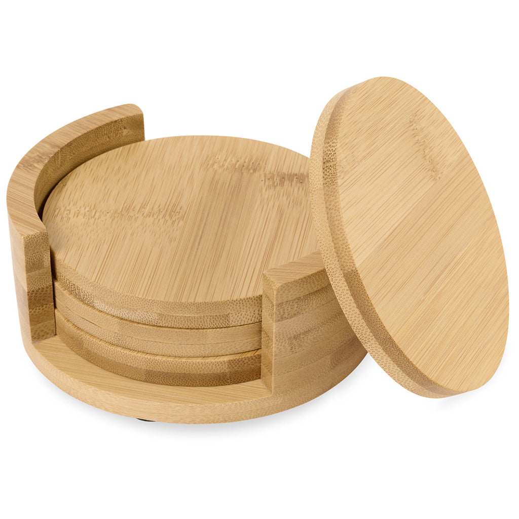 - Whether as a corporate giveaway, event favor, or customer appreciation gift, this bamboo coaster set is a memorable choice