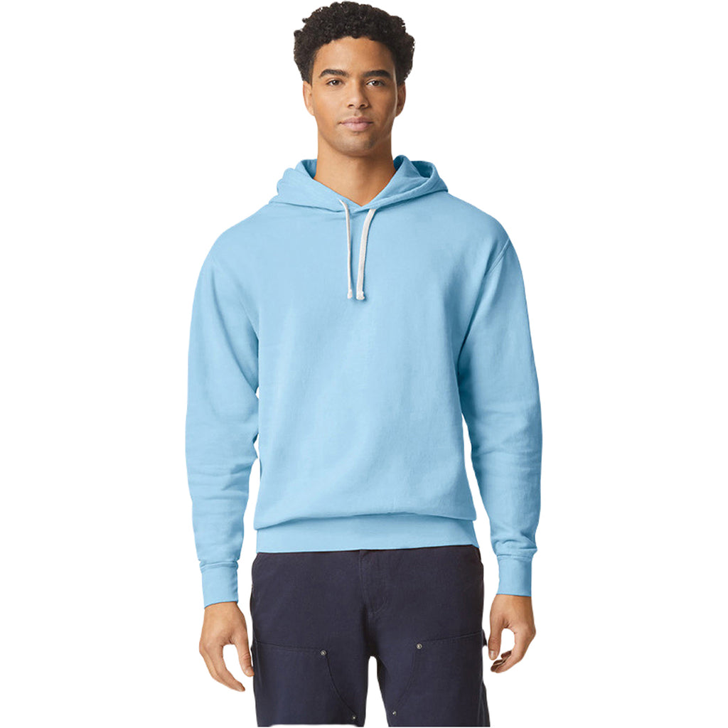 Comfort Colors Unisex Hydrangea Lightweight Cotton Hooded Sweatshirt with a corporate logo is a simple way to add to your apparel offerings. The attached drawstring hood will keep you protected and warm in cooler weather. Great for working out, sporting events, or daily wear. Place an order with your choice of design.Highlights