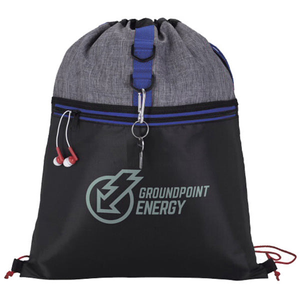 - Drawstring closure with twotone polyester accent