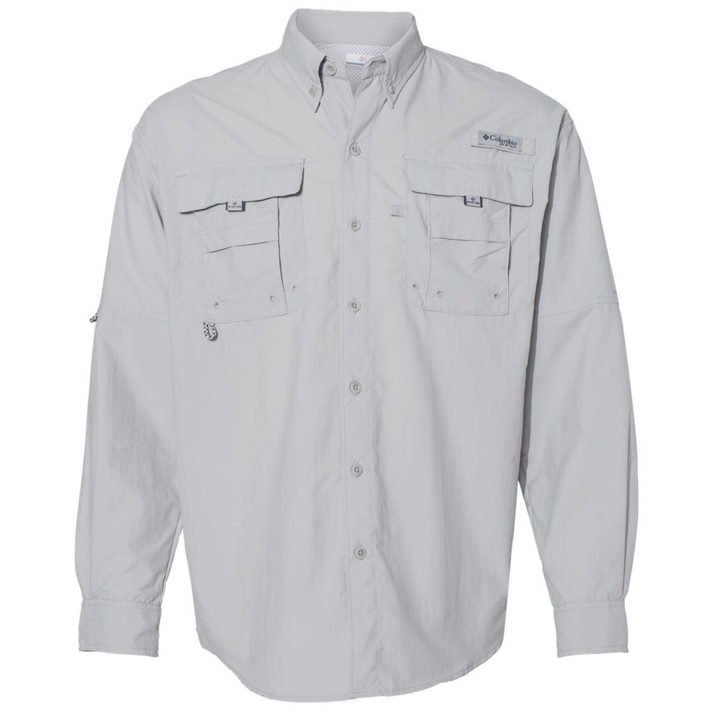 Dress up your look with a custom Columbia Men's Cool Grey PFG Bahama Long Sleeve Shirt. This stylish button-down is also durable and has Tactel nylon and sun protection. Whether you are heading out fishing in at the lake and need the built-in rod holder or looking for something that is tough for the jobsite, this is the best choice.This product cannot ship outside of the United States.