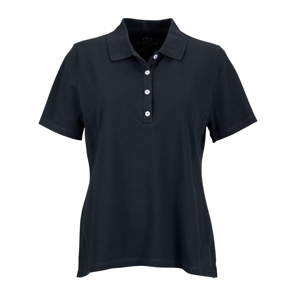 Enjoy the feel and appearance of the embroidered Vantage Women's Black Perfect Polo, which uses fine gauge pique to create strong corporate apparel for all occasions. Extra length in the body offers you more fabric to tuck the shirt in for formal corporate events. A little spandex enhances your mobility to give you a polo that works well in several different sports settings. Wear the versatile polo with a pair of khakis and pair the chic company garment with dress slacks. Pure combed cotton feels super soft against the skin to ensure you feel fresh throughout the day. Add a custom logo and watch recognition of your products reach more customer prospects.Corresponding Men's Style: Vantage Men's Black Perfect Polo