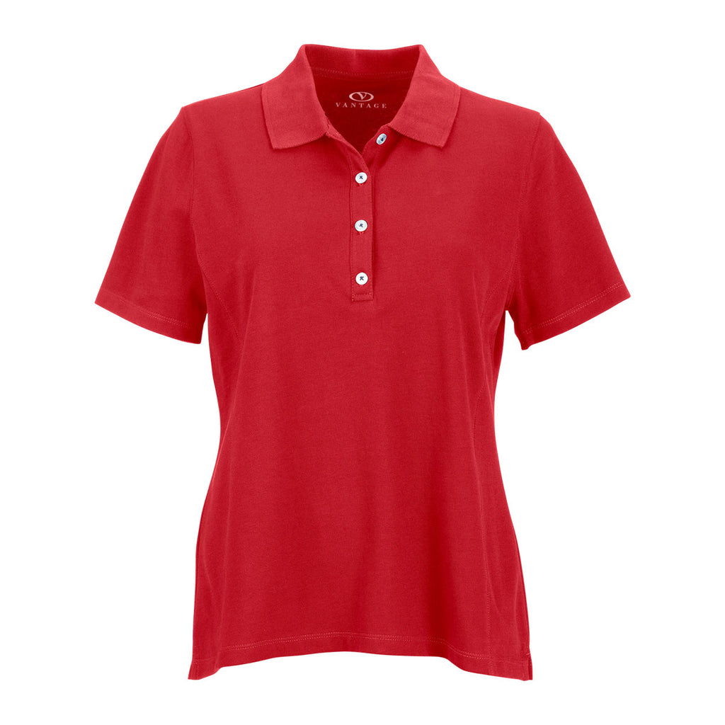Enjoy the feel and appearance of the embroidered Vantage Women's Real Red Perfect Polo, which uses fine gauge pique to create strong corporate apparel for all occasions. Extra length in the body offers you more fabric to tuck the shirt in for formal corporate events. A little spandex enhances your mobility to give you a polo that works well in several different sports settings. Wear the versatile polo with a pair of khakis and pair the chic company garment with dress slacks. Pure combed cotton feels super soft against the skin to ensure you feel fresh throughout the day. Add a custom logo and watch recognition of your products reach more customer prospects.Corresponding Men's Style: Vantage Men's Real Red Perfect Polo