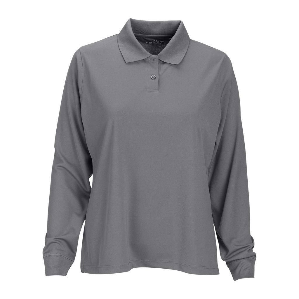 Vantage Women's Grey Omega Long Sleeve Solid Mesh Tech Polo