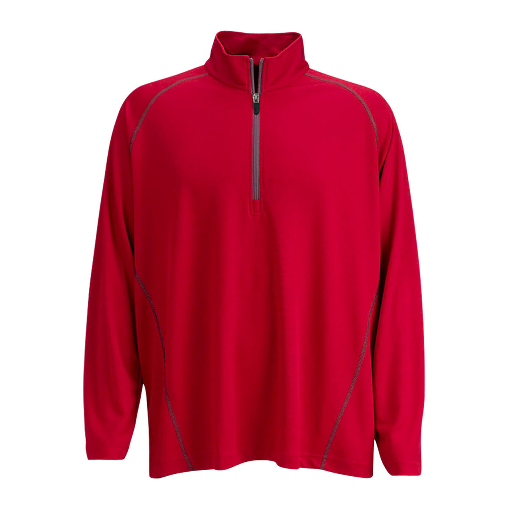 Vantage gives new meaning to the term high performance by introducing the company logoed Vantage Men's Sport Red Performance Pullover. Designed with twill knit, the pullover contains highly durable polyester that enables the fabric to remain in pristine condition for years to come. The quarter-zip neck and contrast zipper complement triple-needle stitching to produce a chic corporate gift for your loyal customers. Wear the high performance pullover as an outer layer and as the middle layer between a Vantage tee and winter jacket. Add a custom logo on the large imprint area to wow customer prospects at business conferences.Corresponding Women's Style: Vantage Women's Sport Red Performance Pullover