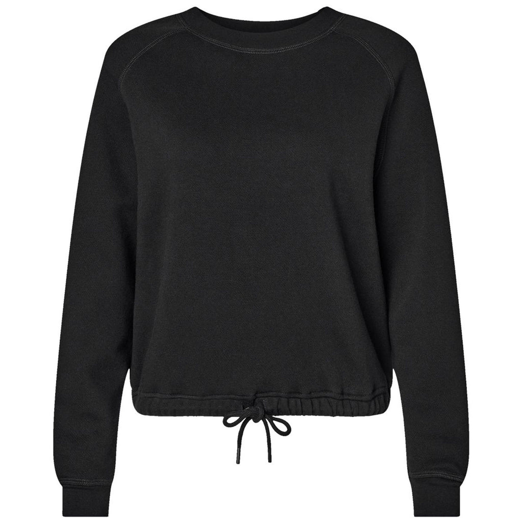 LAT Women's Black Relaxed 3-End Boxy Fleece Crewneck Sweatshirt