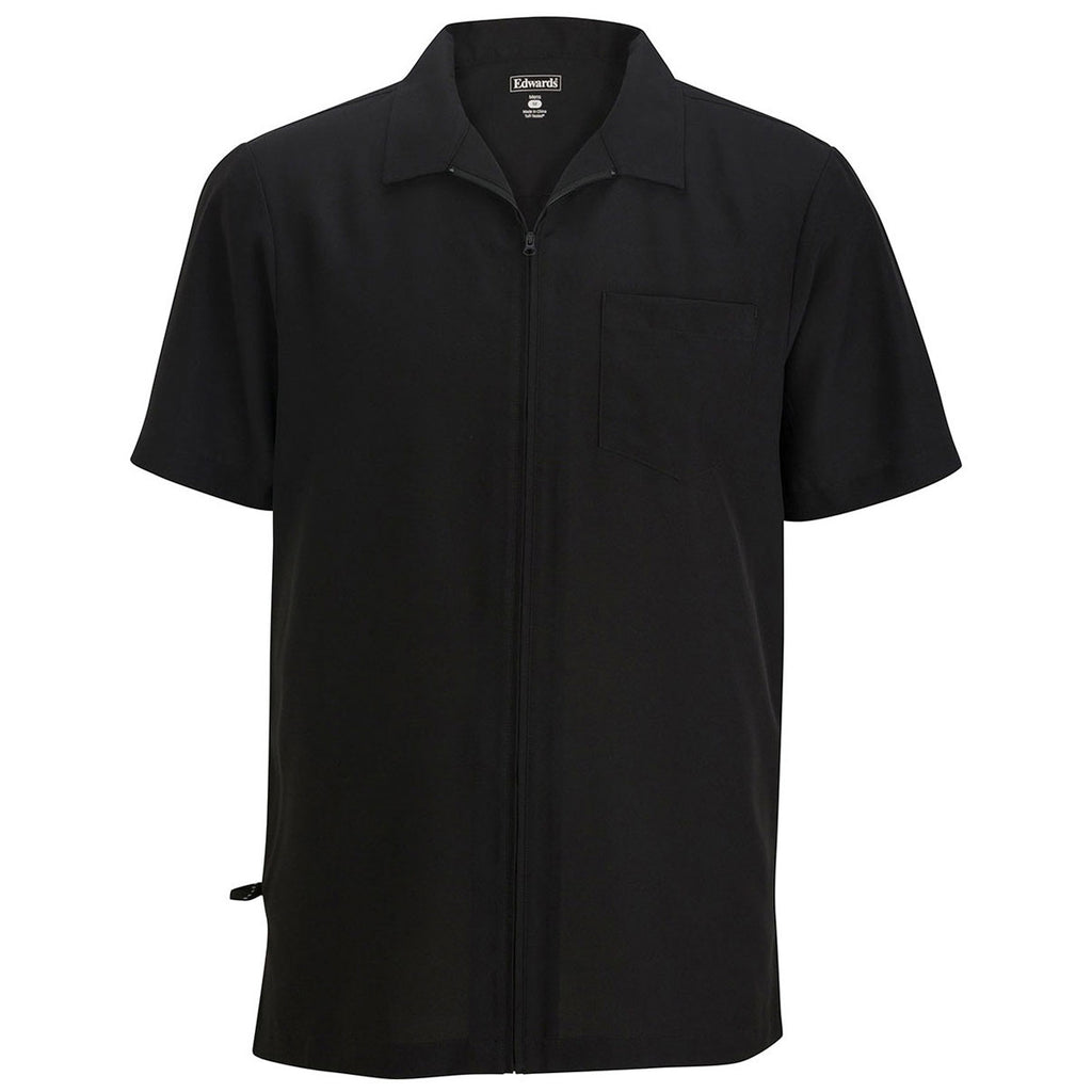 Edwards Men's Black Essential Soft-Stretch Service Shirt in java with a custom embroidery is the gift or uniform you have been searching for. The 100% soft-stretch polyester is lightweight with a traditional fit. Made with stretch, this shirt allows for plenty of movement whether cooking a five-star meal or greeting new clients at the front desk. The full front zipper makes it easy to layer this shirt over a tank or tee while still looking extremely professional. Add a company logo to the Scotchguard protected fabric that has soil release to give as employee gifts or something special to a friend.Highlights