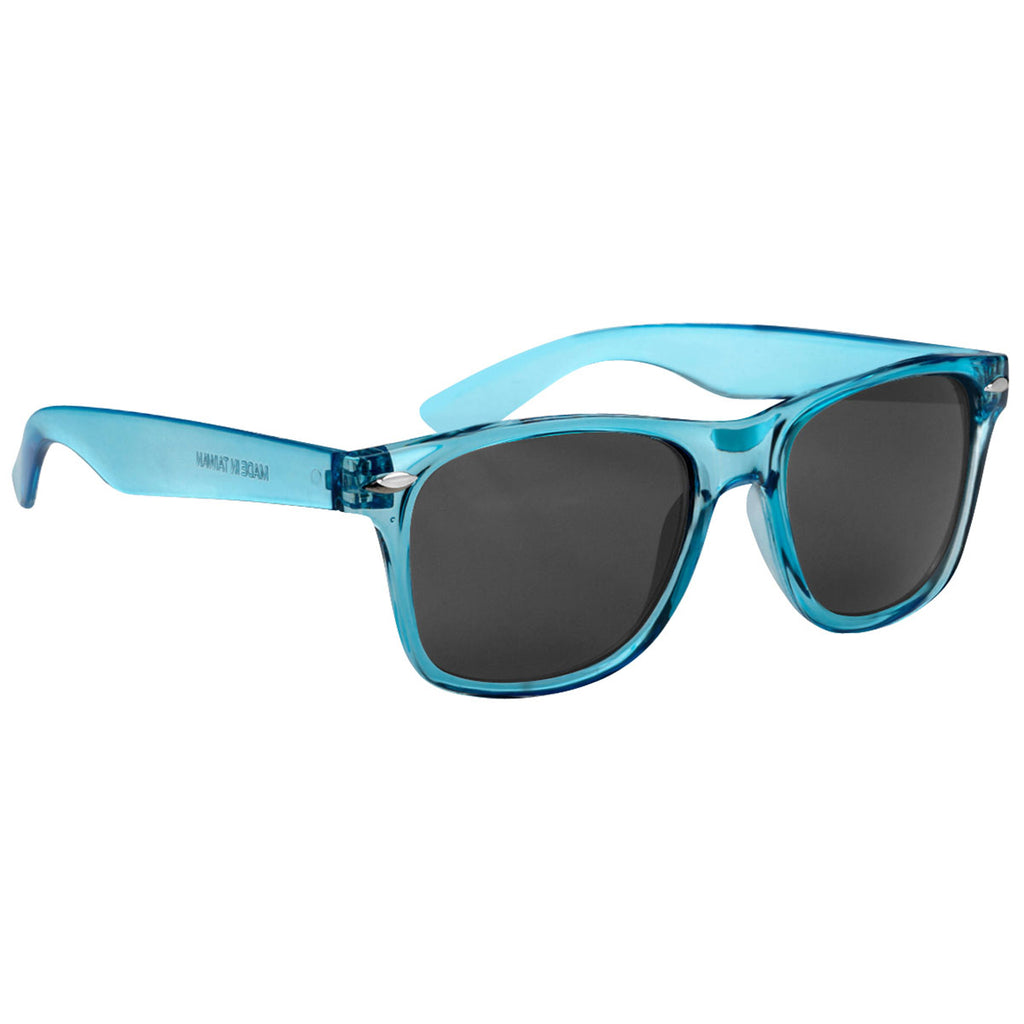 Stay cool in custom Hit Translucent Blue Malibu Sunglasses. These sunglasses come in multiple colors, some of which are made of recycled materials. The UV400 lenses provide 100% UVA and UVB protection so you can enjoy a day at the beach, a sunny morning jog, or a long drive in the car with ease. A perfect addition to many shops.