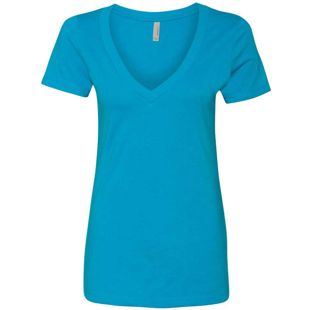 Adding another plain ol' crewneck tee to the outfit isn't always exciting. If you've ever agreed with that statement, perhaps it's time to switch to this Next Level Women's Turquoise CVC Deep V Tee. Not only does it offer a degree of style that you can't get with the usual tee, but it has all the comfort and carefree attitude of a crewneck. If only all shirts could give you an added layer of interest in your outfit without feeling like they added another layer of discomfort as well. But thankfully, v-necks like this can rescue a drab wardrobe in a hurry. With Merchology, you can add a custom logo to take this v-neck to the next level.Setup includes free 2-color logo on 1 location. If you need more colors added to your logo, or another imprint location, please inquire with a Merchologist.
