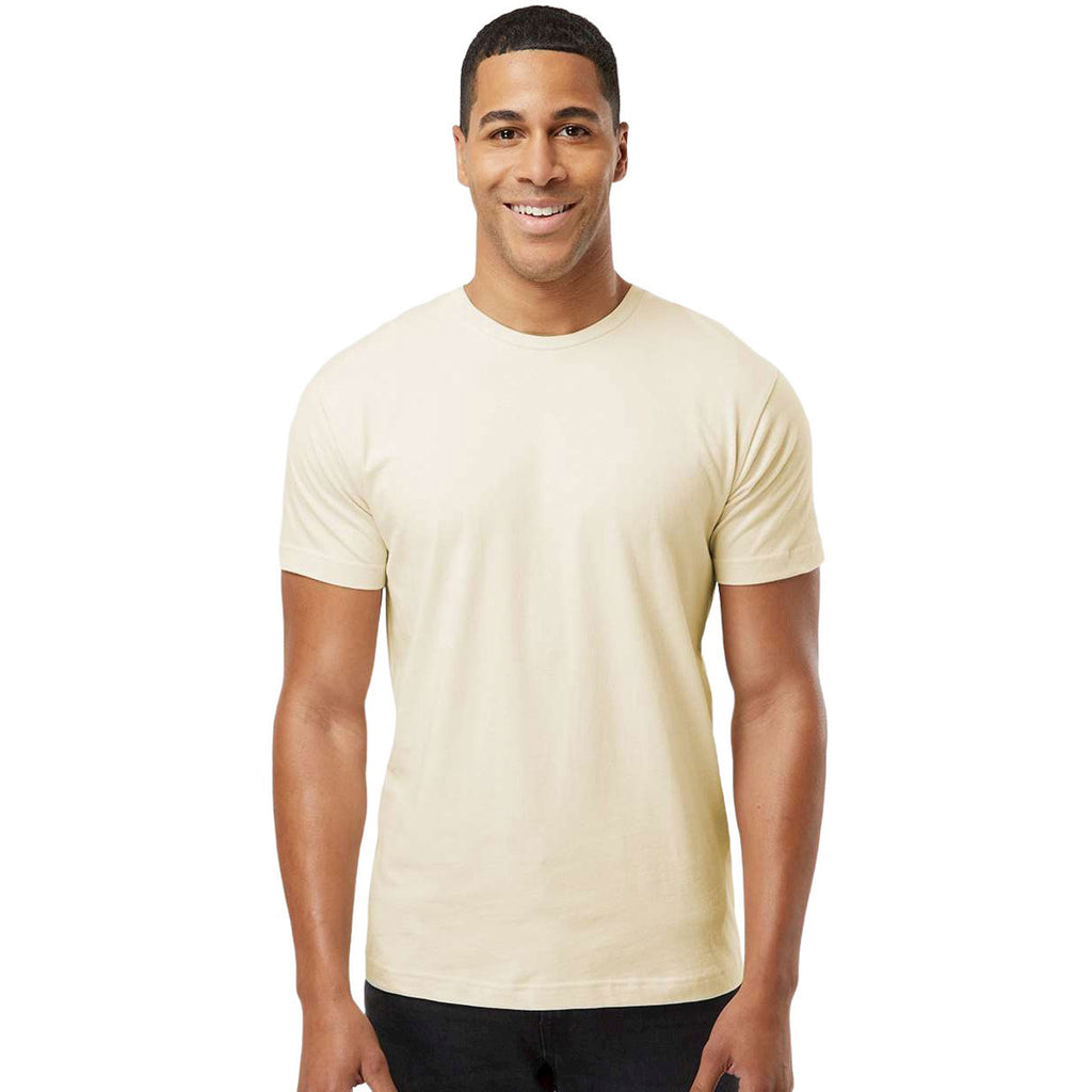 The LAT Men's Natural Fine Jersey Tee is the perfect canvas for your company's custom logo. This basic shirt comes in an assortment of colors and features a large cotton fine jersey body that is conducive for displaying a corporate logo or emblem. The ribbed collar adds a ringed look while producing a better grip on the wearer's skin. This shirt is a great choice for casual company uniforms or for company giveaways. It also works well at recruiting events and can be suitable for a company athletic event if desired. Combined with your brand's logo, this shirt is the perfect way to spread the word about your company.Highlights