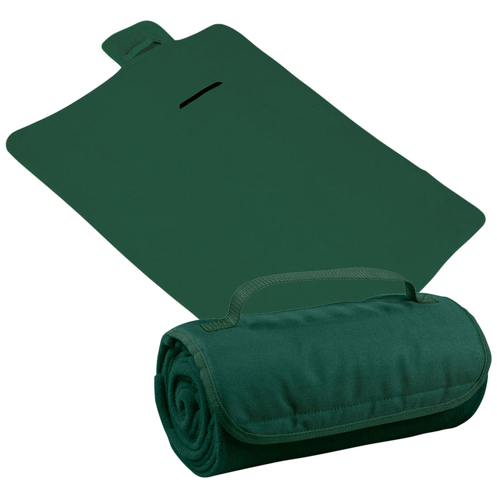 The Hit Hunter Green Roll-Up Blanket with a corporate logo is ideal for beach resorts, cruise ships, or general travel. The large, polyester fleece blanket with a matching color flap easily folds within itself using a hook and loop closure. The handle means this can be easily grabbed and moved to the perfect chair or spot on the beach and then surface washed and reused.