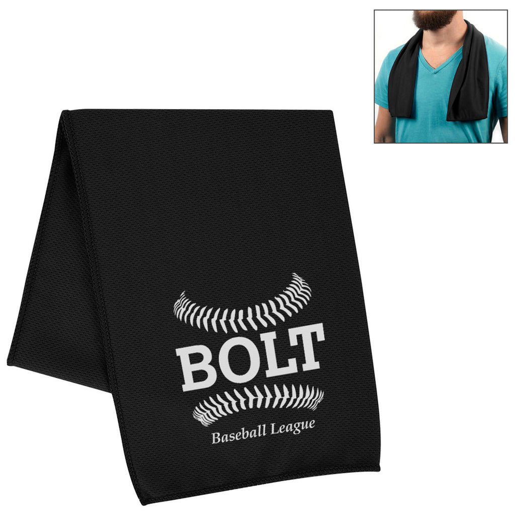 Choose a custom logo for the Hit Black rPET Cooling Sport Towel and stay cool no matter the weather. This polyester fiber towel is made from recycled plastic bottles and quickly absorbs and dries. Perfect for working out, training for a team, or working outdoors in the warm weather. Choose the color that best fits your needs.