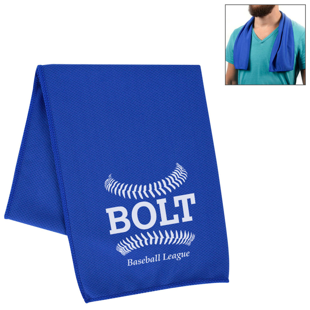 Choose a custom logo for the Hit Blue rPET Cooling Sport Towel and stay cool no matter the weather. This polyester fiber towel is made from recycled plastic bottles and quickly absorbs and dries. Perfect for working out, training for a team, or working outdoors in the warm weather. Choose the color that best fits your needs.