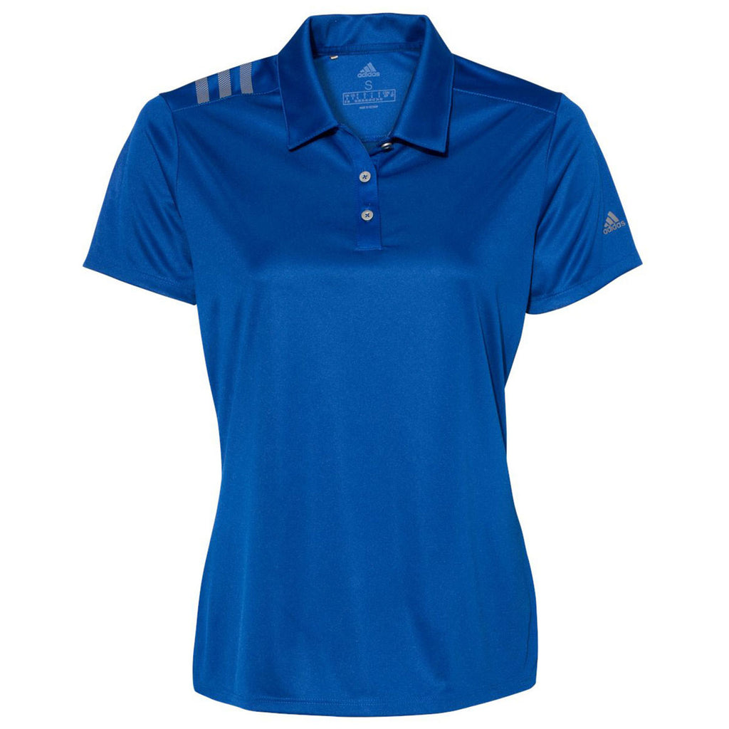 Get noticed in a custom Adidas Women's Collegiate Royal/Grey 3 Stripe Shoulder Sport Polo. The unique look of this 100% recycled polyester jersey polo type shirt with hydrophilic finish will turn heads whether used as employee apparel or just to build a personal wardrobe. Available in a range of colors and sizes, these polos can be embroidered with a corporate logo or custom design of your choosing. The self-fabric collar and three button placket create a professional look as corporate apparel or can be chosen for a day spent with friends. Place an order right away to have these ready to go for your next big event.