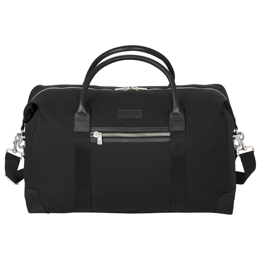 Brooks Brothers Black Wells Duffel with a custom logo is the easiest and best way to prepare for weekend travel. The mid-sized duffle holds 42.3 liters of stuff with leather carry handles and a removable shoulder strap to use as needed. Use the metal zipper to open the large main compartment and pack with ease to prepare for wherever you may go. Place an order today.