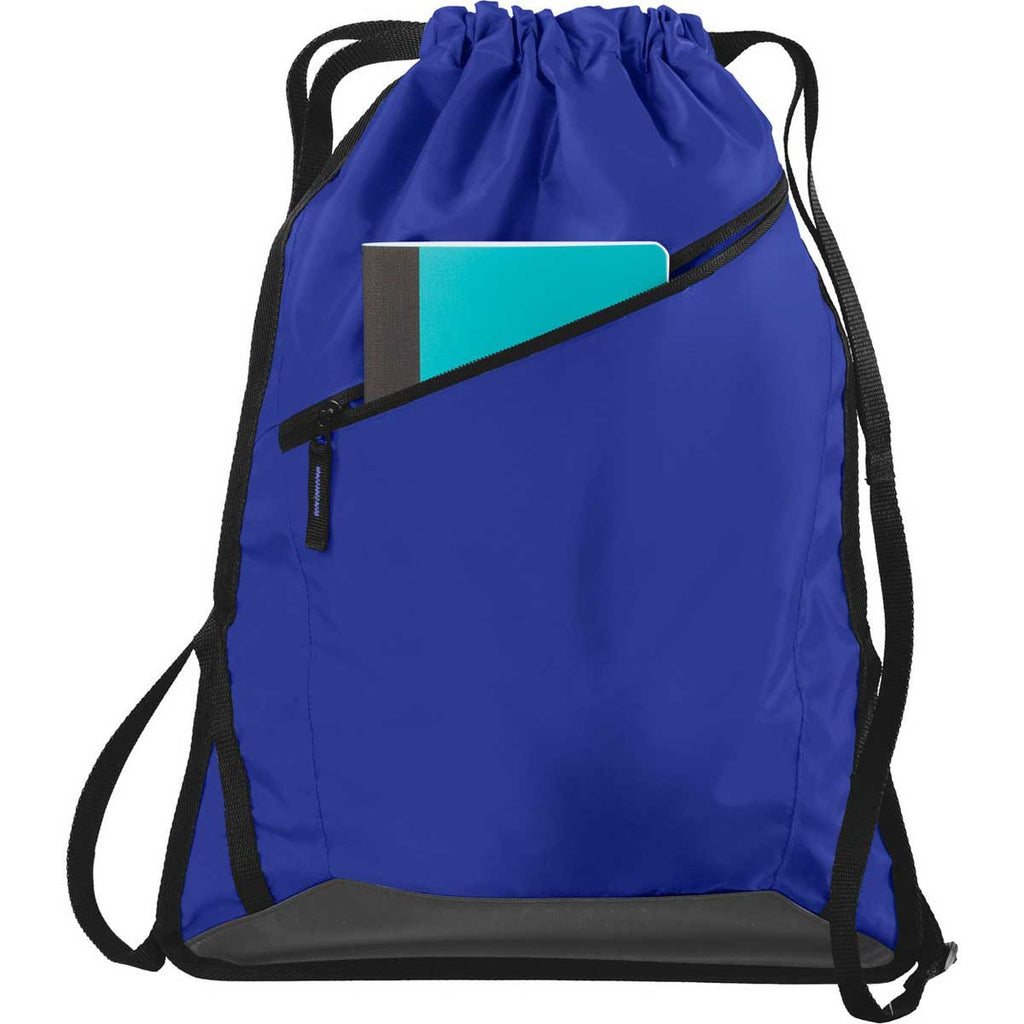 Most cinch packs have drawcords that do a poor job of preventing small items from falling out of the bag. The Port Authority True Royal/Black Zip-It Cinch Pack solves the dilemma by including a front zippered pocket that keeps small items secure. You can carry your electronic devices knowing that the devices remain inside of the cinch bag. Reinforced seams enhance the durability of the cinch bag, which makes the cinch bag the perfect lightweight storage unit for day hikes. Adjustable web straps never dig into your skin, no matter how heavy the cinch bag gets. Add a custom logo to the large imprint area to create a cost effective marketing platform for your business.Highlights