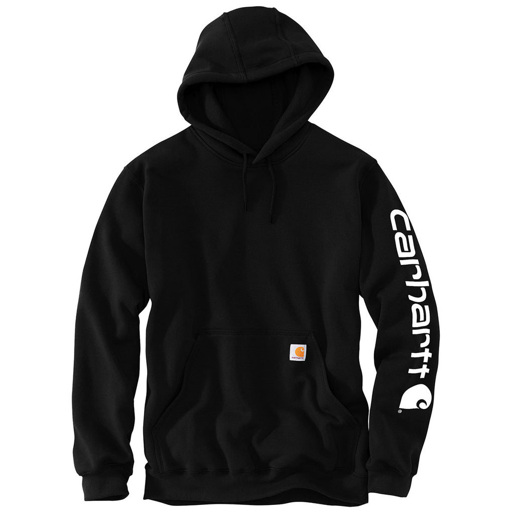 Carhartt Men's Black Midweight Hooded Logo Sweatshirt with a custom logo is the ultimate in athleisurewear. The layerable sweatshirt with front kangaroo pocket features the Carhartt logo along the left sleeve and is stretchable, triple-stitched, and loose-fitting. Great for working outdoors, working out, or lounging at home. Order today.This product can only ship within the United States and Canada.