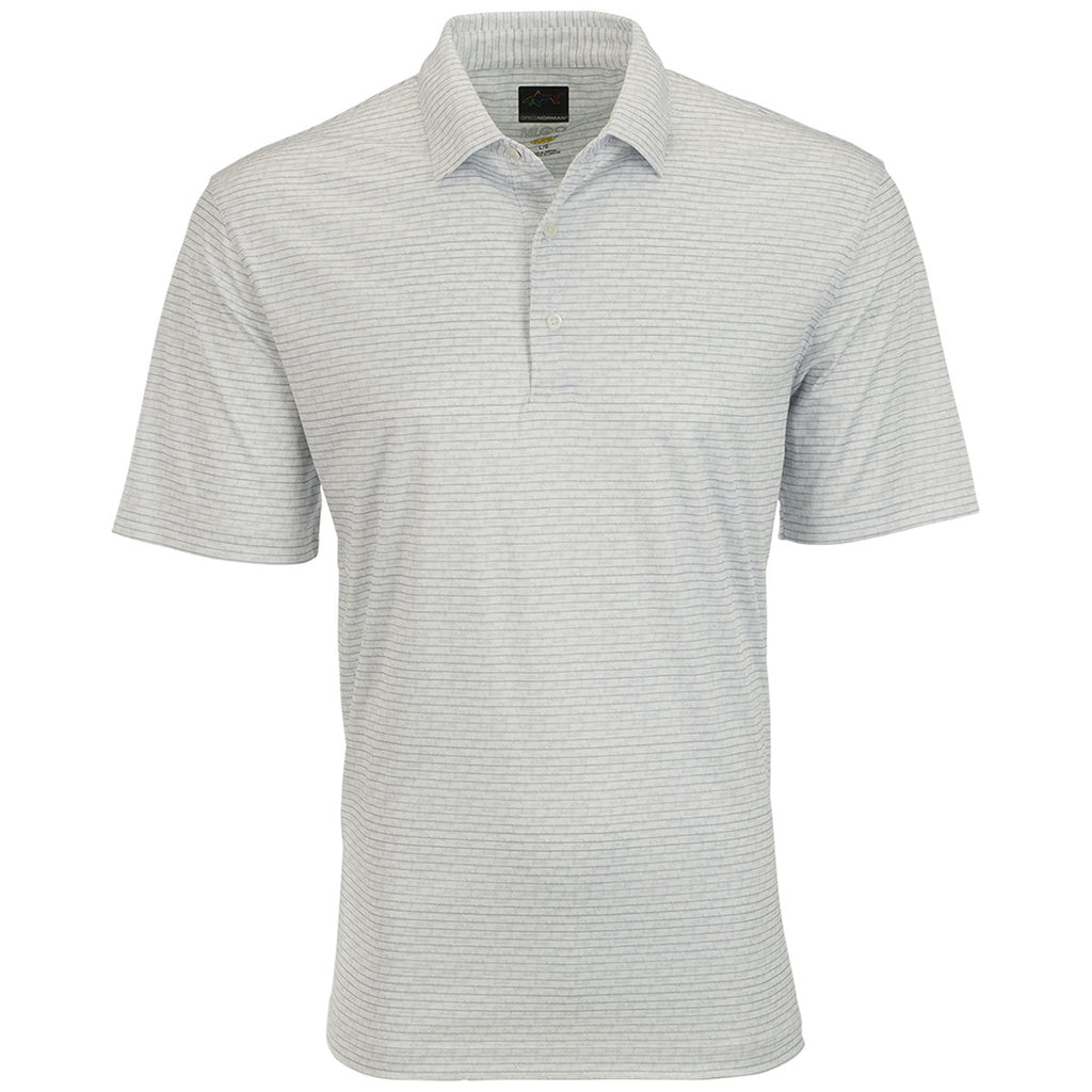 Design a custom logo for the Greg Norman Men's White Microlux Cart Print Polo. Made with Play Dry performance and a UPF 50+, this three-button placket polo with a tonal print will turn heads whether used as a unique uniform, corporate wear, or to show off at the driving range. Place an order right away.Highlights