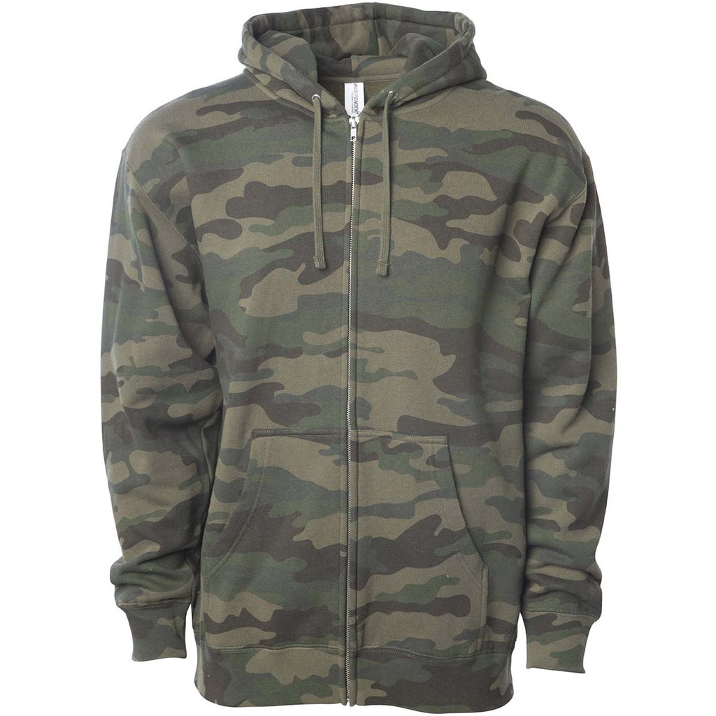 A unique custom sweatshirt can be created with the Independent Trading Co. Unisex Forest Camo Hooded Full-Zip Sweatshirt. Perfect for use as athleisure wear, this hooded sweatshirt offers a full zip front with fleece lined hood that is ideal for a morning run or commute to the office. Use these screen print hooded sweatshirts as part of employee apparel or as employee gifts at the end of the year party or company outing. The company logo will stand out on one of the numerous available colors with split stitch double needle sewing and generous fit. Place an order for a few or many as soon as possible.Highlights