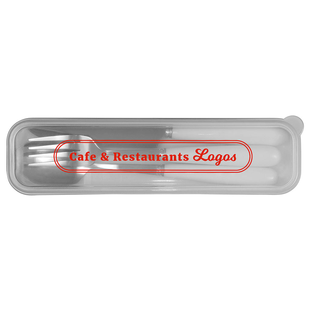 If your team likes to take their own utensils with them when they are on the go, consider supplying them with a Primeline White Cutlery Set in Plastic Case featuring your company's custom logo or design. This kit comes complete with a sturdy snap-shut case and stainless steel utensils included inside.The minimum order for this product is 50 pieces.