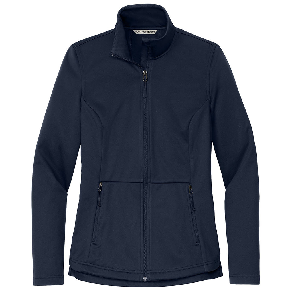 Add embroidery to the Port Authority Women's True Navy Flexshell Jacket to create a sleek look for the woman on the go. This polyester knit jacket is water-repellent, breathable, and slightly longer for extra coverage when it counts. The simple design adds versatility to this jacket, which can be worn to work, special events, or for general wear. Place an order today.Corresponding Men's Style: Port Authority Men's True Navy Flexshell Jacket