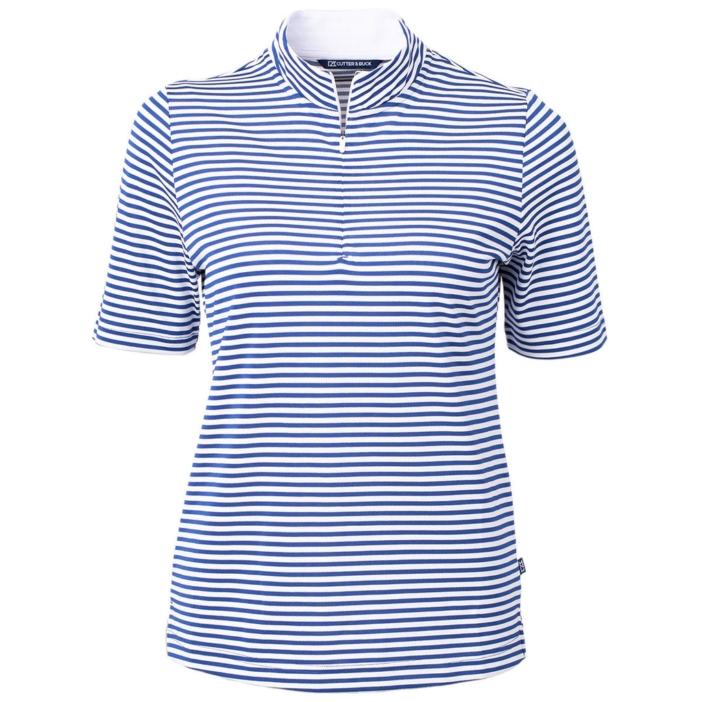 Cutter & Buck Women's Tour Blue Virtue Eco Pique Stripped Recycled Polo
