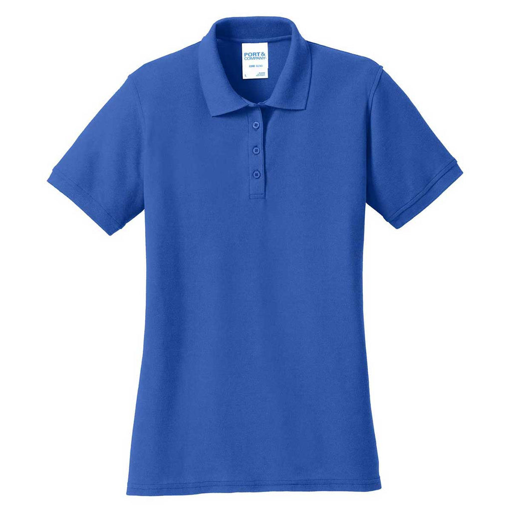 Crafted with a balanced cotton-polyester blend, this Port & Company Women's Royal Core Blend Pique Polo brims with classic appeal. A comfortable contoured fit with side seams makes it the perfect option for a girl on the move. Timeless polo details like button placket, dyed-to-match buttons, ribbed collar and cuffs bring sweet appeal and day-long comfort. It features double-needle stitching for durability. Treated with Soil Release finish for easy cleanups. Easily personalize this Port & Company Women's Royal Core Blend Pique Polo with your company's logo or motto for use as employee work wear or distributing as corporate promotional merchandise which will unleash a lasting brand awareness campaign.Highlights