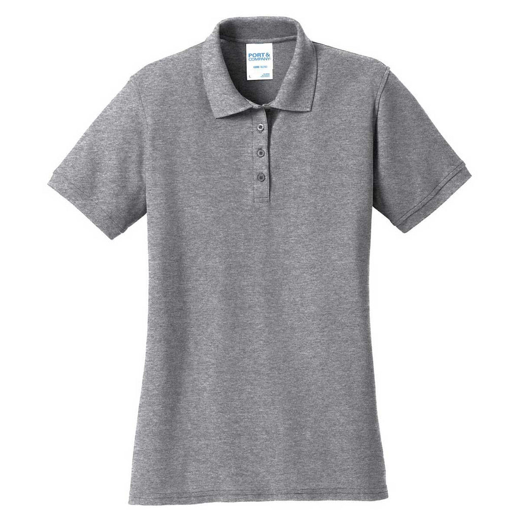 Crafted with a balanced cotton-polyester blend, this Port & Company Women's Athletic Heather Core Blend Pique Polo brims with classic appeal. A comfortable contoured fit with side seams makes it the perfect option for a girl on the move. Timeless polo details like button placket, dyed-to-match buttons, ribbed collar and cuffs bring sweet appeal and day-long comfort. It features double-needle stitching for durability. Treated with Soil Release finish for easy cleanups. Easily personalize this Port & Company Women's Athletic Heather Core Blend Pique Polo with your company's logo or motto for use as employee work wear or distributing as corporate promotional merchandise which will unleash a lasting brand awareness campaign.Highlights