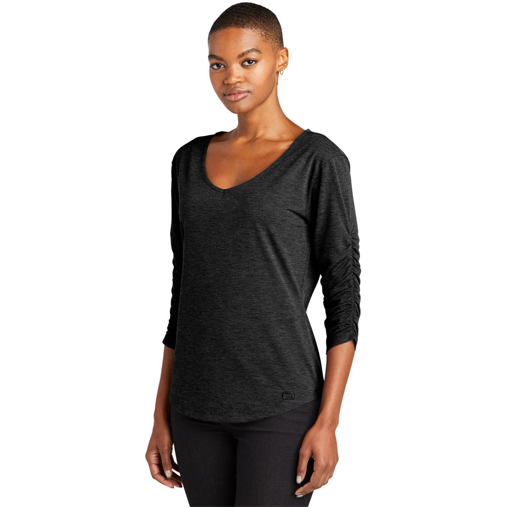 OGIO Women's Blacktop Evolution V-Neck with custom embroidery is made to perform when you need it most. The cutting-edge style with a slight drop shoulder can be dressed up or down depending on your needs. Add a custom logo to this versatile V-neck and let your imagination go wild. Place an order today all allow your style to evolve.