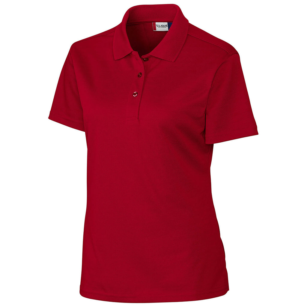 The Clique Women's Red Malmo Pique Polo is perfect for weekend wear, from the golf course to the tennis court to the shopping mall. Plus, if you add your company logo in embroidery to the front of the shirt, you have an excellent advertising item to hand out. Available in a variety of cheerful colors, this women's polo includes other exceptional features including a 100% polyester pique material, three-button placket, back half moon, and IL50 certification for durability. This polo shirt makes the perfect giveaway gift to bring to corporate events, such as golf events, recruiting events, and trade shows.Corresponding Men's Style:Clique Men's Red Malmo Pique Polo