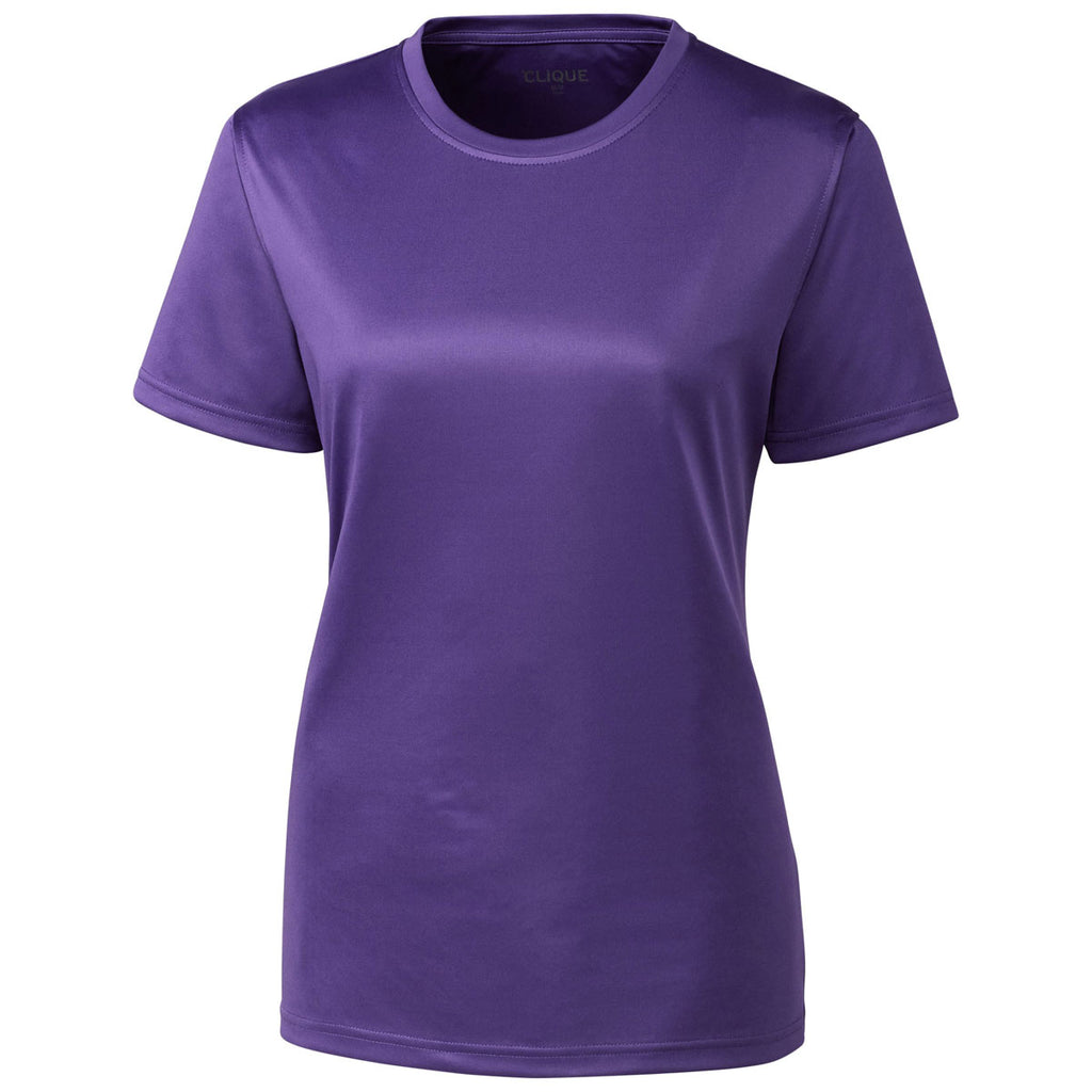 At the next company sponsored golf tournament, hand out the Clique Women's Royal Purple Spin Jersey Tee to the female members of your accomplished team. Long lasting color makes the tee perfect for frequent use in a wide variety of competitive athletic events. Designed with 100% spin-dye polyester interlock, the tee handles all of the punishment thrown at it. Add a custom logo to send the message your company stands behind high quality products and services. Open sleeves allow you to rear back and let it rip from the tees and fairways. Self-fabric neck trip adds panache to an already fashionable short sleeve shirt.Corresponding Men's Style: Clique Men's Royal Purple Spin Jersey Tee
