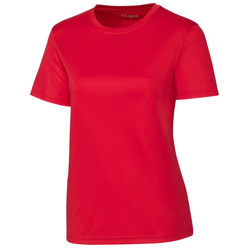 At the next company sponsored golf tournament, hand out the Clique Women's Red Spin Jersey Tee to the female members of your accomplished team. Long lasting color makes the tee perfect for frequent use in a wide variety of competitive athletic events. Designed with 100% spin-dye polyester interlock, the tee handles all of the punishment thrown at it. Add a custom logo to send the message your company stands behind high quality products and services. Open sleeves allow you to rear back and let it rip from the tees and fairways. Self-fabric neck trip adds panache to an already fashionable short sleeve shirt.Corresponding Men's Style: Clique Men's Red Spin Jersey Tee