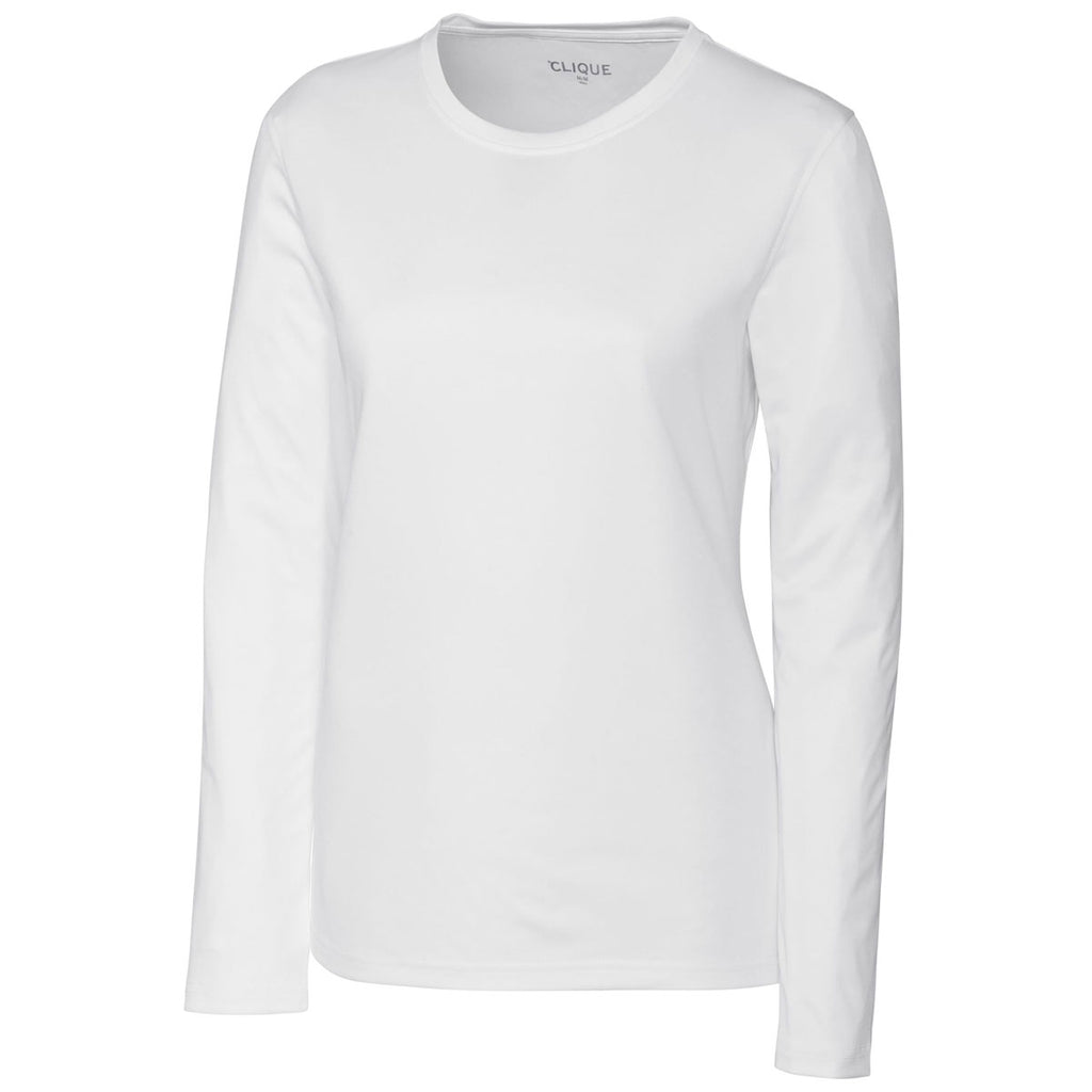 Worn as standalone company apparel or the first layer for a cold weather ensemble, the Clique Women's White Long Sleeve Spin Jersey Tee offers the ultimate in fashion flexibility. Designed with 100% spin dye polyester interlock, the durable tee is perfect for wearing during sporting competitions. Screen print your corporate logo to let everyone know your company places value in offering high quality products and services. The fully taped neck seam resists rips and tears to deliver tremendous apparel performance for years to come. Show off the rib cuffs to demonstrate your fine fashion taste in employee uniforms.Corresponding Men's Style: Clique Men's White Long Sleeve Spin Jersey Tee