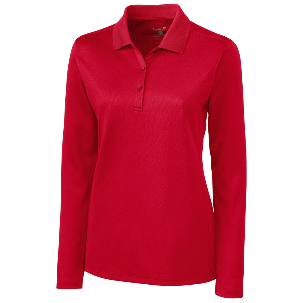 At the next industry sales conference, give away the corporate logoed Clique Women's Cardinal Red Long Sleeve Ice Pique Polo to build credibility for your brand. The 100% polyester mesh polo includes an embroidery area for attaching your company logo. With a custom logo, you reach more customer prospects in the community. Polyester mesh allows the fabric to breathe, which makes the pique polo perfect to wear during corporate sponsored golf tournaments. Cover stitching at the front and back body seams resist rips and tears to deliver years of incredible fashion performance.Corresponding Men's Style: Clique Men's Cardinal Red Long Sleeve Ice Pique Polo