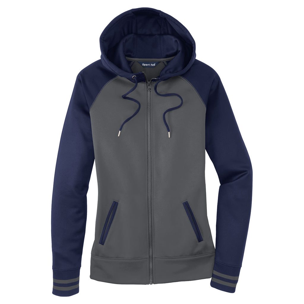 Sport-Tek Women's Dark Smoke Grey/Navy Sport-Wick Varsity Fleece Full-Zip Hooded Jacket