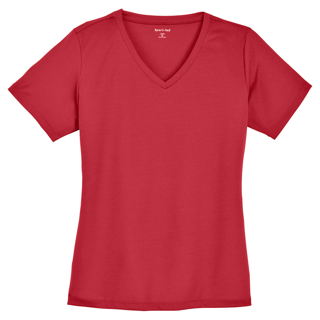 There is a 12 piece minimum on all orders for Sport-Tek t-shirts. This item will be imprinted, not embroidered.Everyone loves a T-shirt, after all. Especially if the T-shirt in question is this Sport-Tek Women's True Red PosiCharge RacerMesh V-Neck Tee. And because you can add your custom logo to a T-shirt to enhance your brand, T-shirts are just as useful for your business as they are for your personal life.