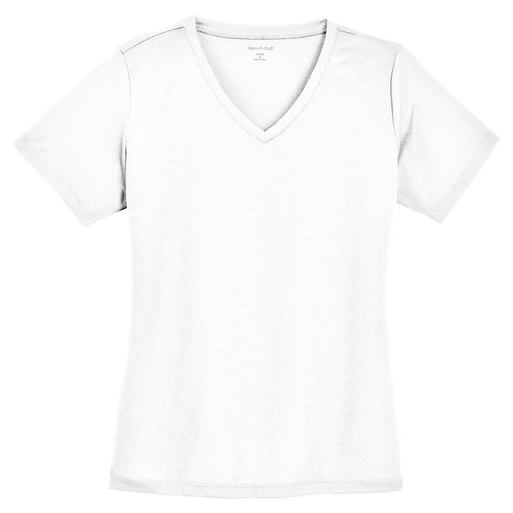 There is a 12 piece minimum on all orders for Sport-Tek t-shirts. This item will be imprinted, not embroidered.Everyone loves a T-shirt, after all. Especially if the T-shirt in question is this Sport-Tek Women's White PosiCharge RacerMesh V-Neck Tee. And because you can add your custom logo to a T-shirt to enhance your brand, T-shirts are just as useful for your business as they are for your personal life.