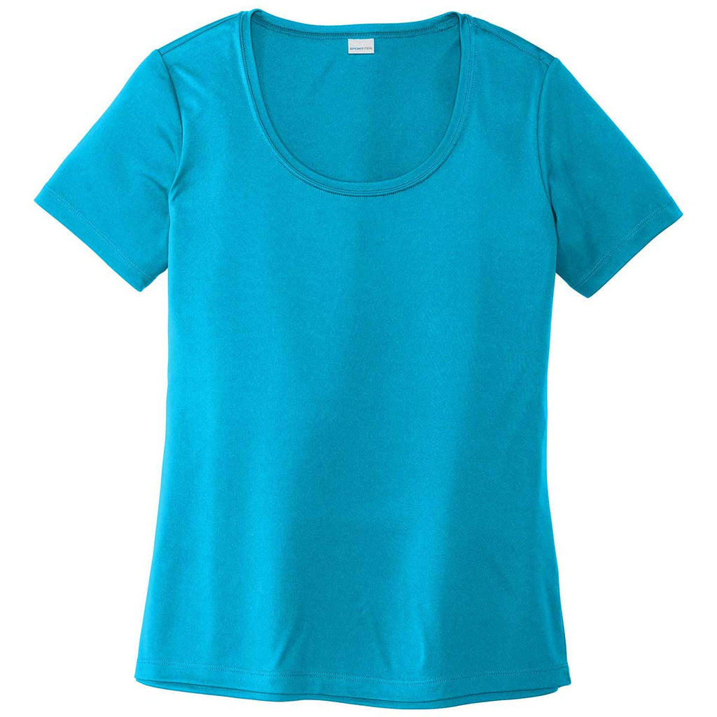 A simple tee is highly versatile and the Sport-Tek Women's Sapphire Posi-UV Pro Scoop Neck Tee is no exception. Whether wearing alone or as part of a layered look, this 100% polyester interlock tee offers PosiCharge technology and exceptional UV rating. Add a custom screen print to use these tees as a uniform for team events or a company uniform for those that need to be highly recognizable. An ideal end of the year gift for all employees or as a gift for meeting a sales goal. This must have tee will fit into nearly every wardrobe and is comfortable enough to wear again and again. Place an order today to have these on hand as gifts, incentives, or uniforms.Corresponding Men's Style:Sport-Tek Men's Sapphire Posi-UV Pro Tee