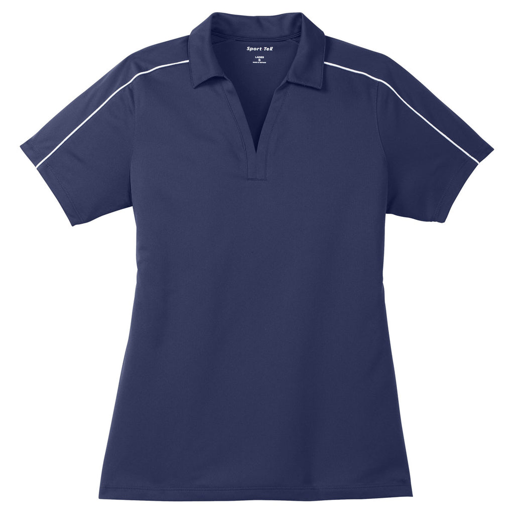 Sport-Tek Women's True Navy/White Micropique Sport-Wick Piped Polo