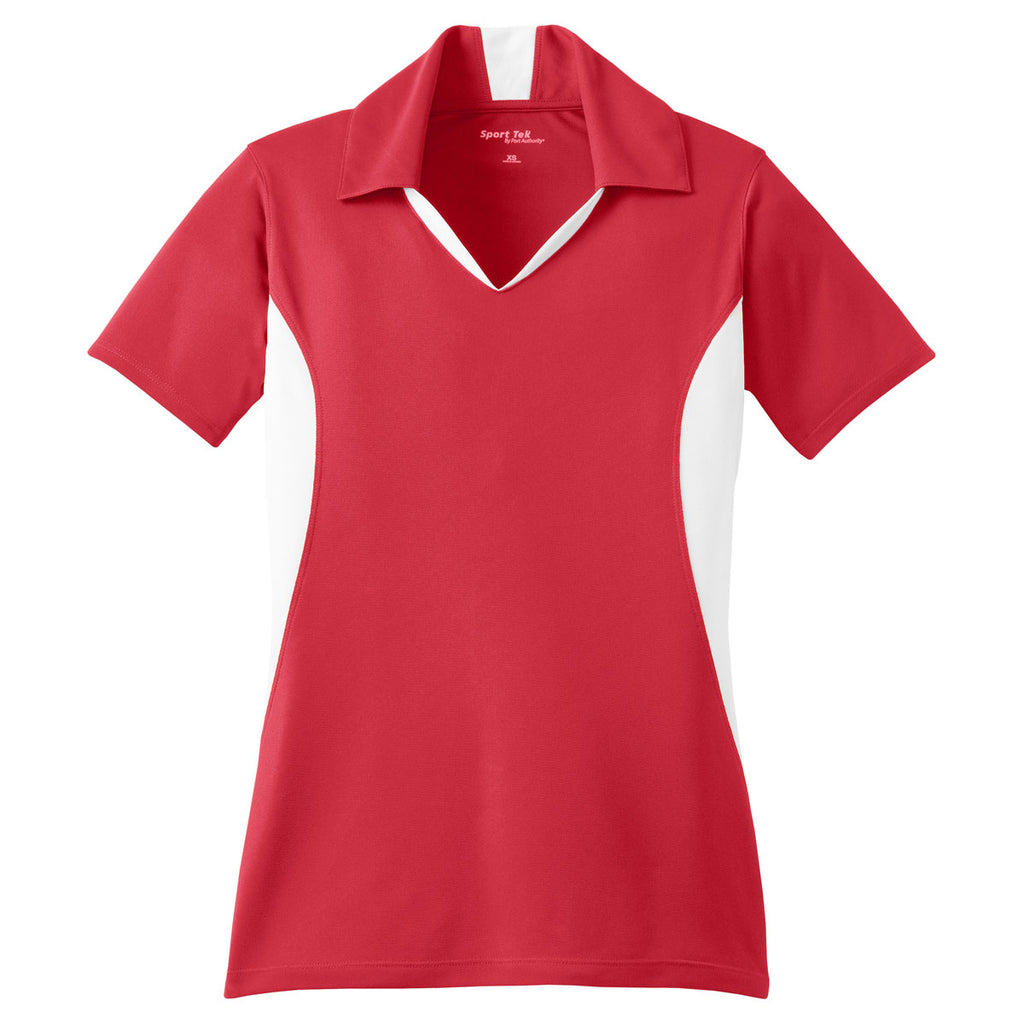 Sport-Tek Women's True Red/White Side Blocked Micropique Sport-Wick Polo