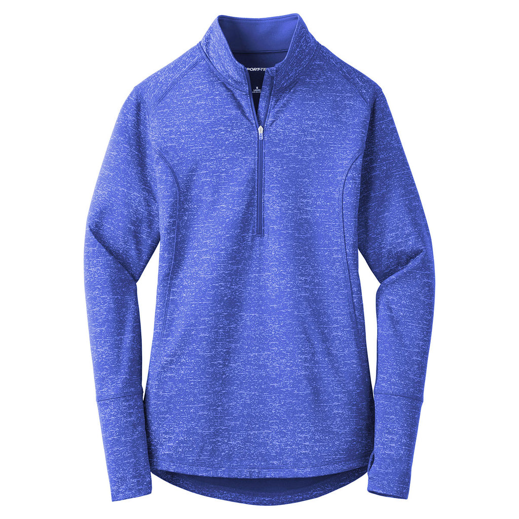 Sport-Tek Women's True Royal Sport-Wick Stretch Reflective Heather 1/2-Zip Pullover