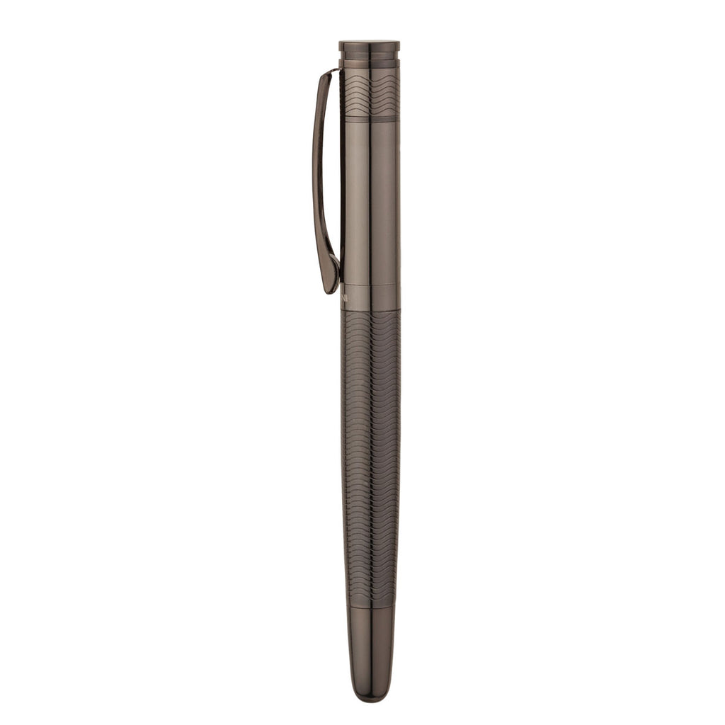 Set off a great promotion! Constructed of quality brass, the Bettoni Gunmetal Abbracci Rollerball Pen makes a fabulous custom logoed giveaway. Rendered in a slim, sleek design with a stylish cap-off clip and covered in gunmetal plating with a gloss finish. On your upcoming trade show booth, help drive home the information that you want people to know about you and the company with this customizable pen.The minimum order for this product is 50 pieces.