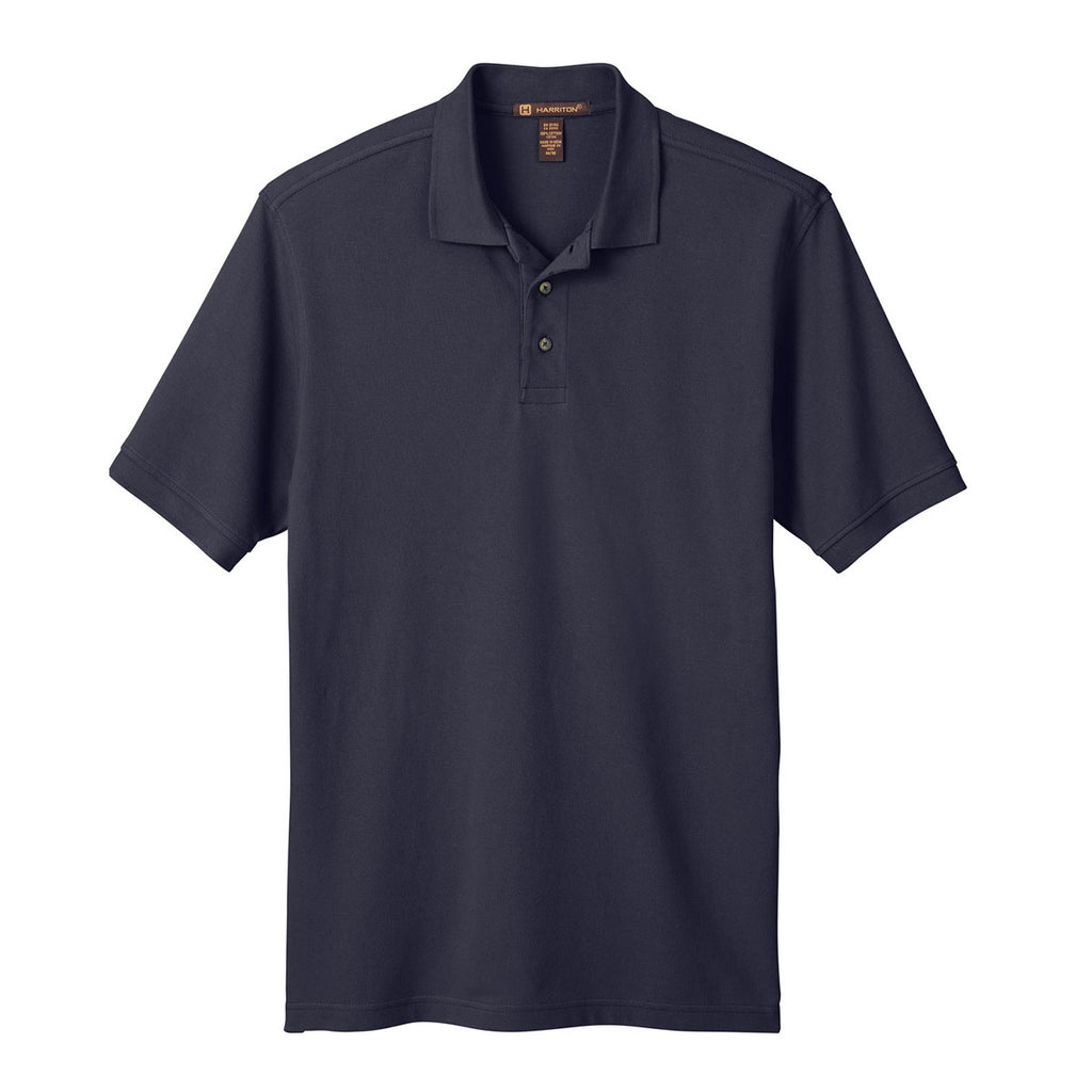 Enjoy the super soft feel of 100% ringspun cotton by wearing the Harriton Men's Navy 6 oz. Ringspun Cotton Pique Short-Sleeve Polo. Designed to wear at work and after work for informal social events, the stylish polo includes top stitching throughout the fabric to ensure long lasting durability. Horn-style buttons add panache to the polo to make you stand out at a professional networking event. Use the shoulder rubbing affair to display the custom logo you added for enhanced company recognition. Hand the side seamed polos out to reward your team of dedicated employees.Corresponding Women's Style: Harriton Women's Navy 6 oz. Ringspun Cotton Pique Short-Sleeve Polo