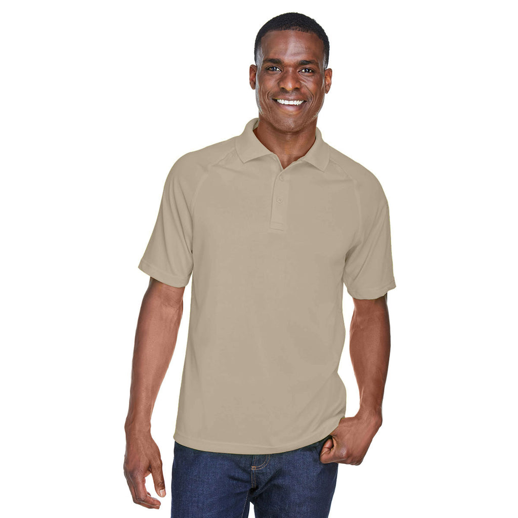 Harriton Men's Desert Khaki Tactical Performannce Polo Shirt combines structure, adaptability, and mobility. It is built for tough performance and resists snagging, pilling and picking. Featuring a matching flat knit collar, three-button placket and two mic clips, you can dress it up with pants or under jackets for that spruced up look. Antimicrobial wicking fabric keeps you dry and comfortable to help maintain a professional appearance. A drop-tail hem makes for superior back coverage during quotidian tasks while strategic side slits provide unhampered mobility. Outfit your company or brand with confidence by picking this customizable polo shirt.Corresponding Women's Style: Harriton Women's Desert Khaki Tactical Performance Polo